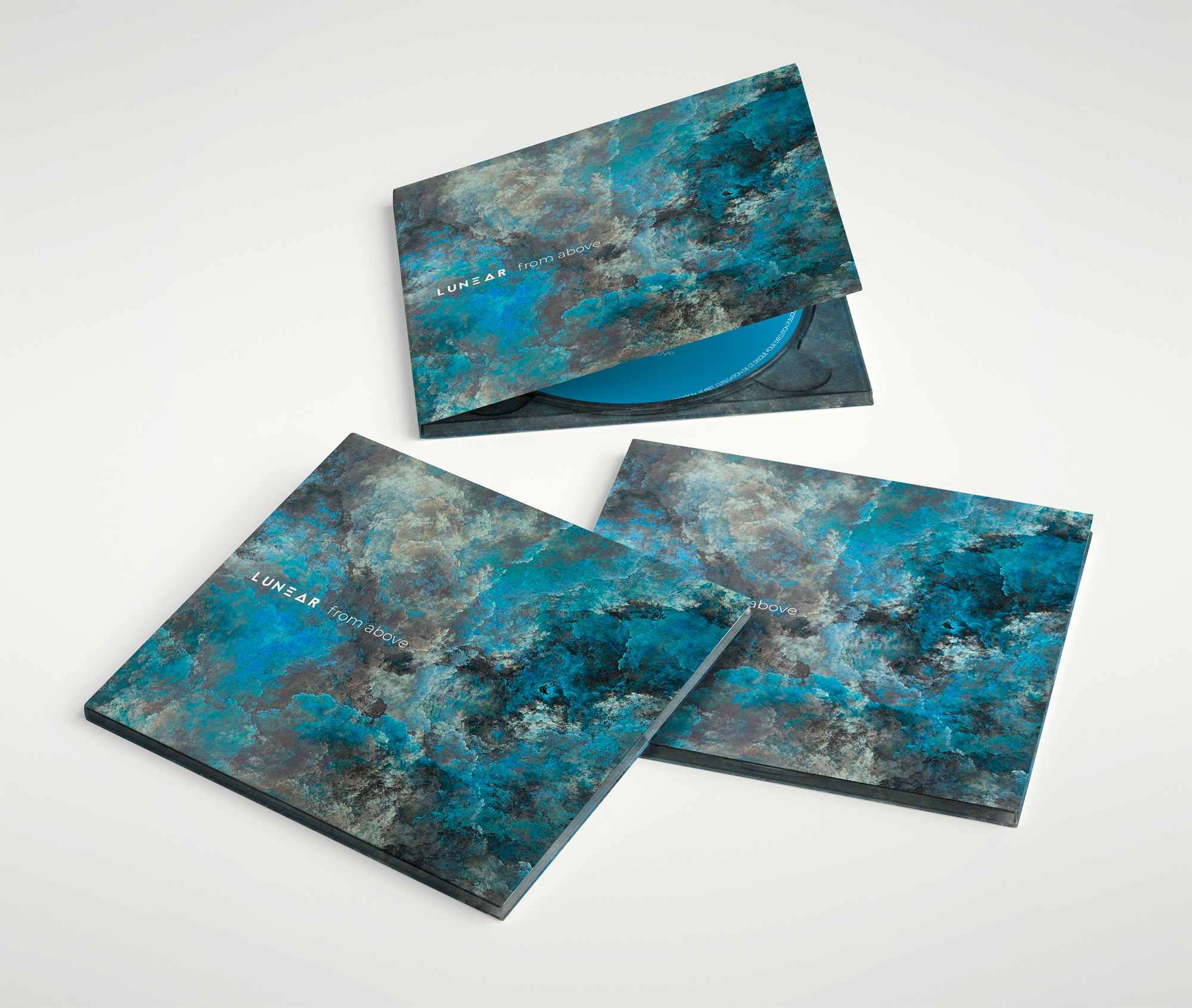 Pour le 4eme album de Lunear, j'ai utilisé une fractale qui évoque la Terre vue du ciel, pour coller au titre du disque.
